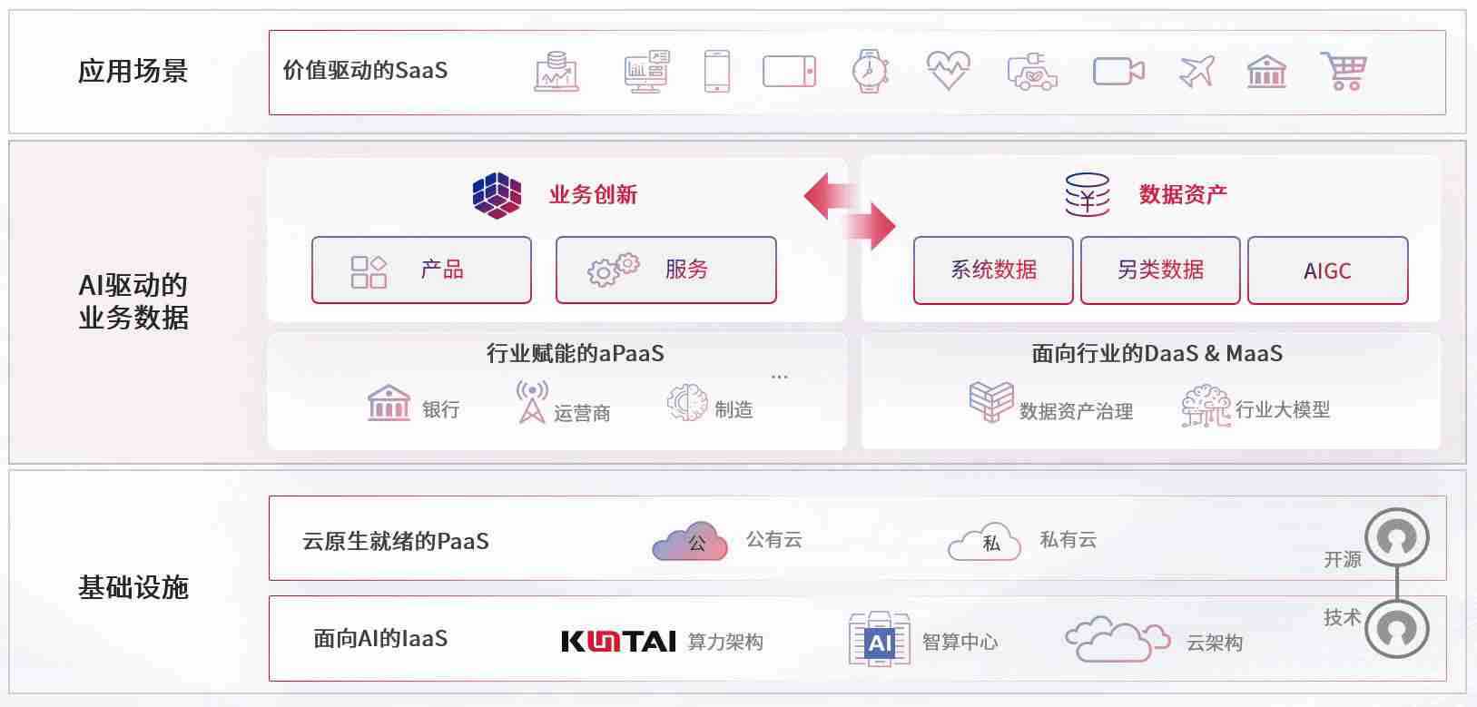 数字时代,,,,围绕企业数字化转型的关键要素,,,z6com尊龙数码开创性的提出数云融合战略和技术体系框架,,,着力在云原生、、数字原生、、AI原生和信创产业上架构产品和服务能力,,,,为处在不同数字化转型阶段的快消零售、、、汽车、、、金融、、医疗、、、、政企、、、教育、、运营商等行业客户提供泛在的敏捷IT能力和融合的数据驱动能力,,构建跨界融合创新的数字业务场景和新业务模式,,助力企业级客户建立面向未来的核心能力和竞争优势,,,全面推动社会的数字化、、、、智能化转型升级。。。